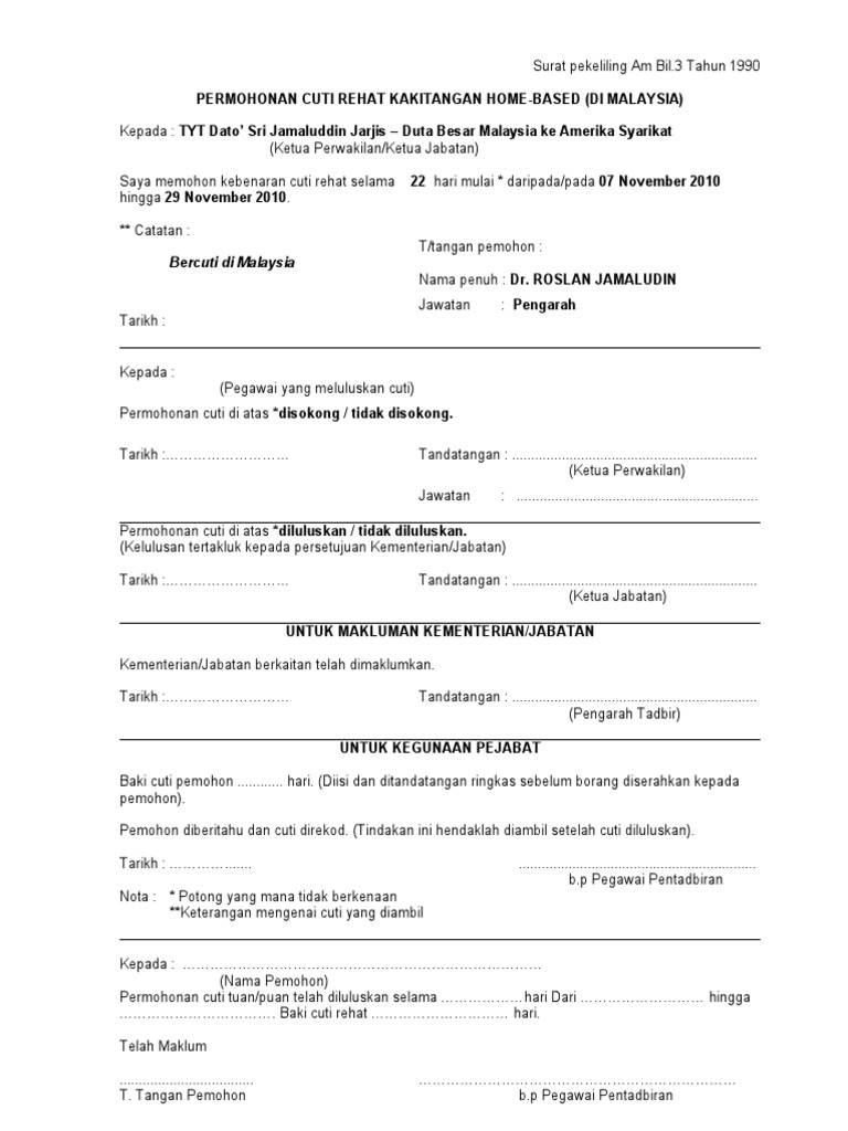 Borang cuti tanpa rekod menduduki peperiksaan.pdf. Gantian cuti rehat adalah award wang tunai yang diberi kepada anggota perkhidmatan awam yang tidak kelayakan cuti rehat khas ( guru ). Borang cuti tanpa rekod untuk mendu. Borang permohonan cuti newhairstylesformen2014.com via www.newhairstylesformen2014.com. .cuti borang cuti rehat kerajaan contoh borang pendaftaran borang cuti sakit kakitangan awam borang cuti sekolah surat memohon cuti sekolah borang cuti tahunan borang keluar pejabat contoh cuti nikah contoh borang kehadiran borang cuti kkm borang permohonan pekerjaan.