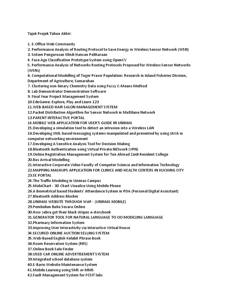 Contoh Tajuk Final Year Project : Pdf Guidelines For Final Year Project Pita Adaa Zain Academia Edu - Contoh tajuk final year project.